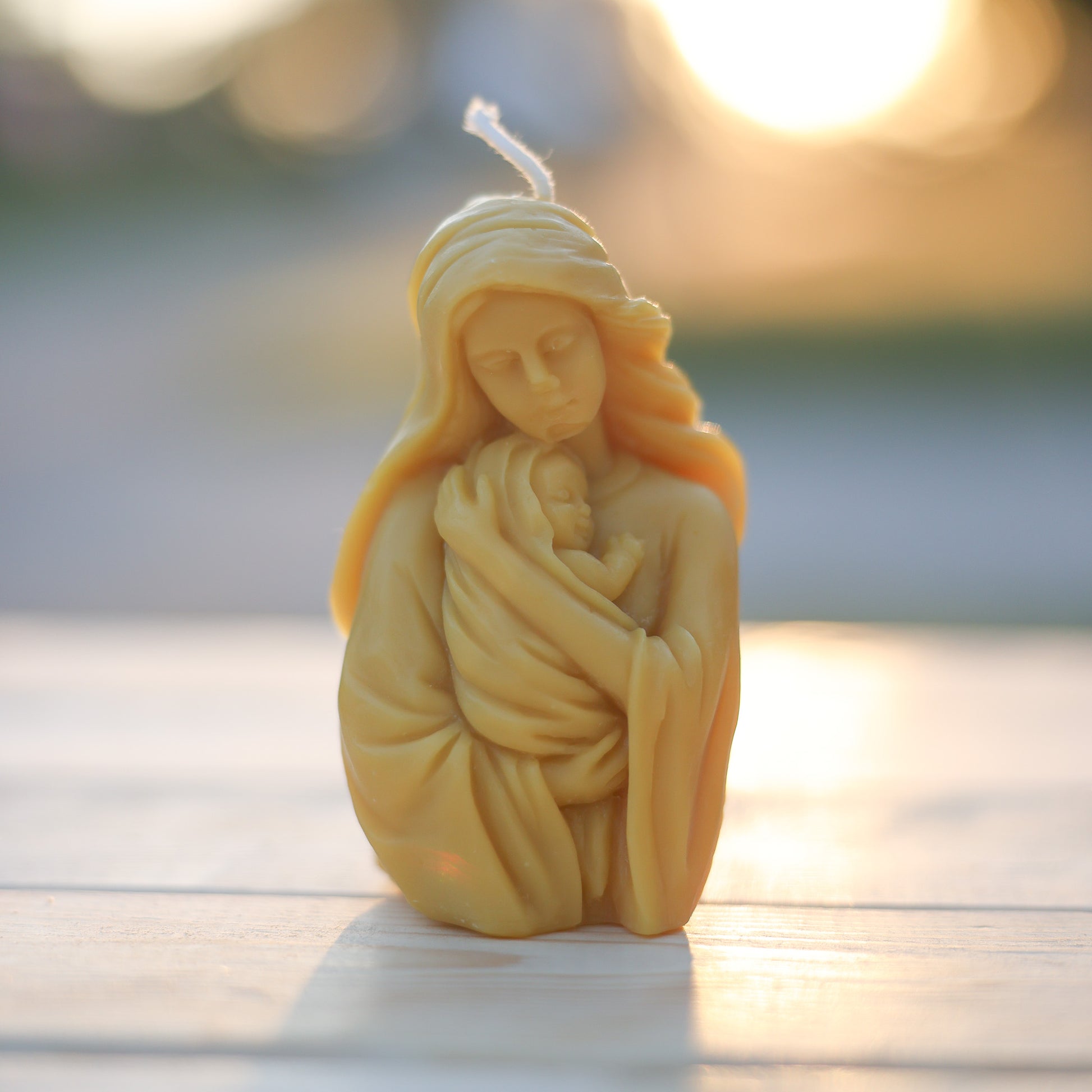 Hand-poured in small batches with 100% pure beeswax and a cotton wick, each piece carries a gentle honeyed aroma and a golden, natural glow.