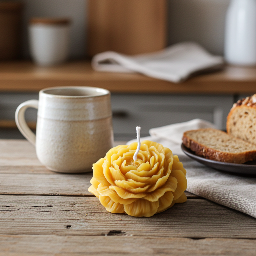 A delicate blossom in wax, unfolding petals that feel like spring captured in amber.