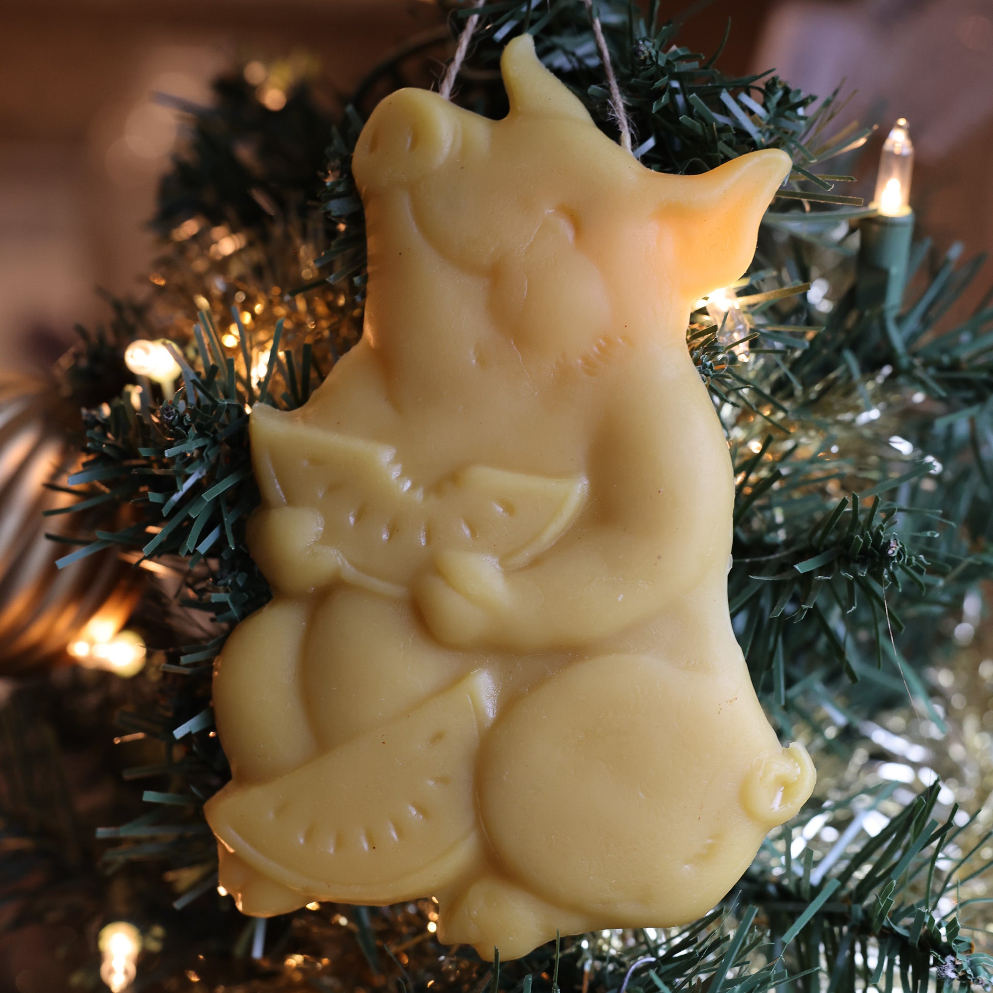 Full of joy and simple country charm, our Pig with Watermelon Beeswax Ornament is sure to bring smiles wherever it hangs. Hand-poured in small batches from 100% pure beeswax gathered from our Missouri hives, this happy little pig captures the spirit of rustic life and the sweetness of handmade tradition.
