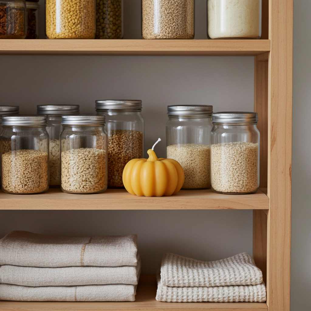 Harvest warmth in a sculpted gourd—autumn gathered into one golden flame.