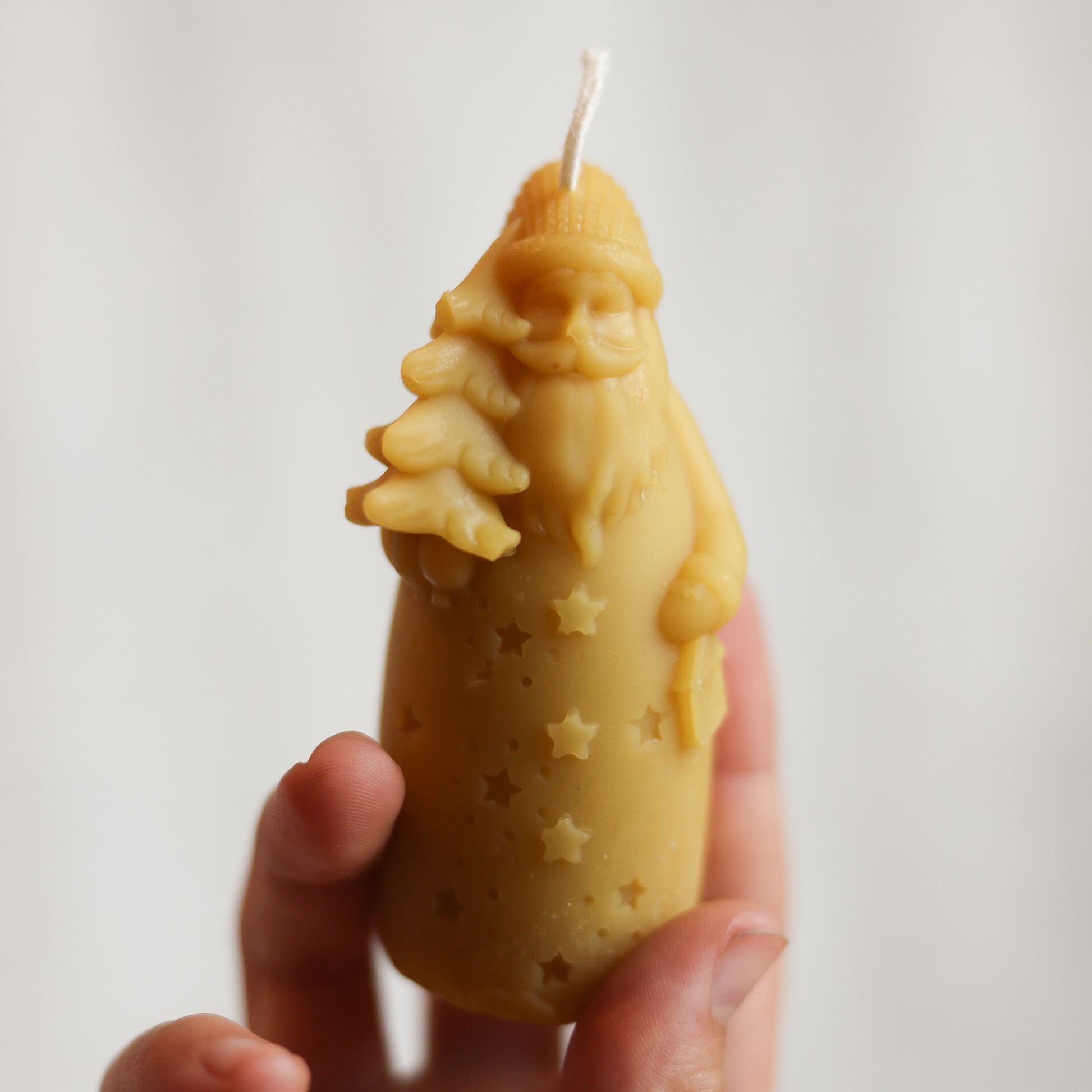 Each piece is crafted by hand with pure beeswax and a cotton wick, ensuring a clean, even burn. Slight variations in texture and tone make every Santa uniquely beautiful — a keepsake candle meant to be treasured for years to come.